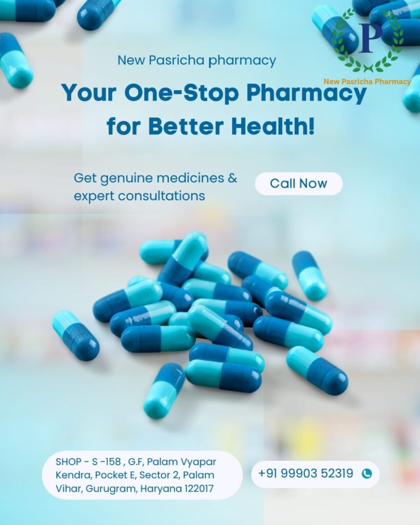 Visit New Pasricha Pharmacy, the best pharmacy in Gurgaon, trusted since 1995 for quality healthcare services. With 30 years of experience, we continue to deliver genuine medicines, professional guidance and dependable service. Whether you need daily prescriptions, wellness essentials or expert advice, New Pasricha Pharmacy is your trusted healthcare partner.